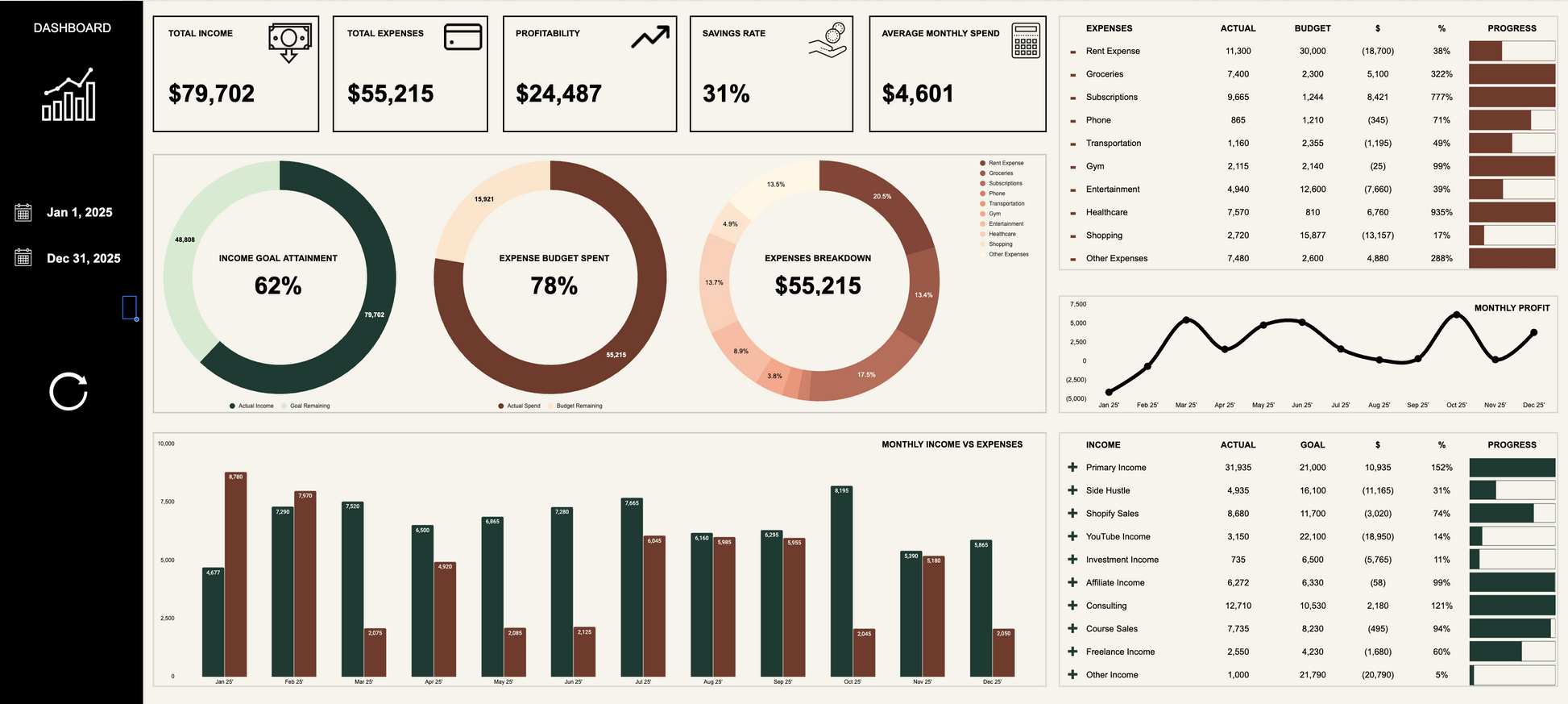 Whether you're working a 9–5, freelancing on the side, selling digital products, or just trying to get a better grip on your monthly finances — this Google Sheets template gives you everything you need to stay on track.