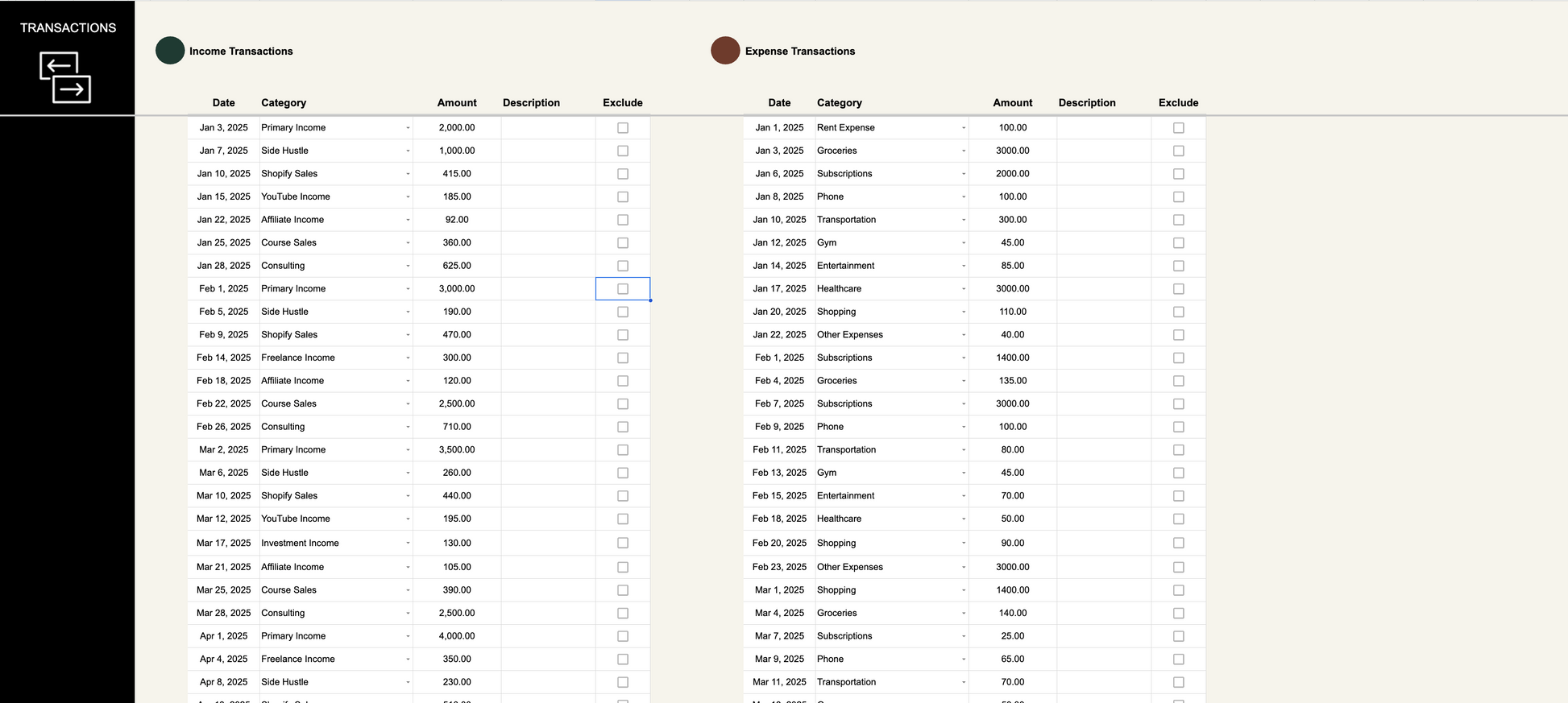 You can pair this template with ChatGPT or Grok to auto-format transactions from credit cards or banks — just paste and go.